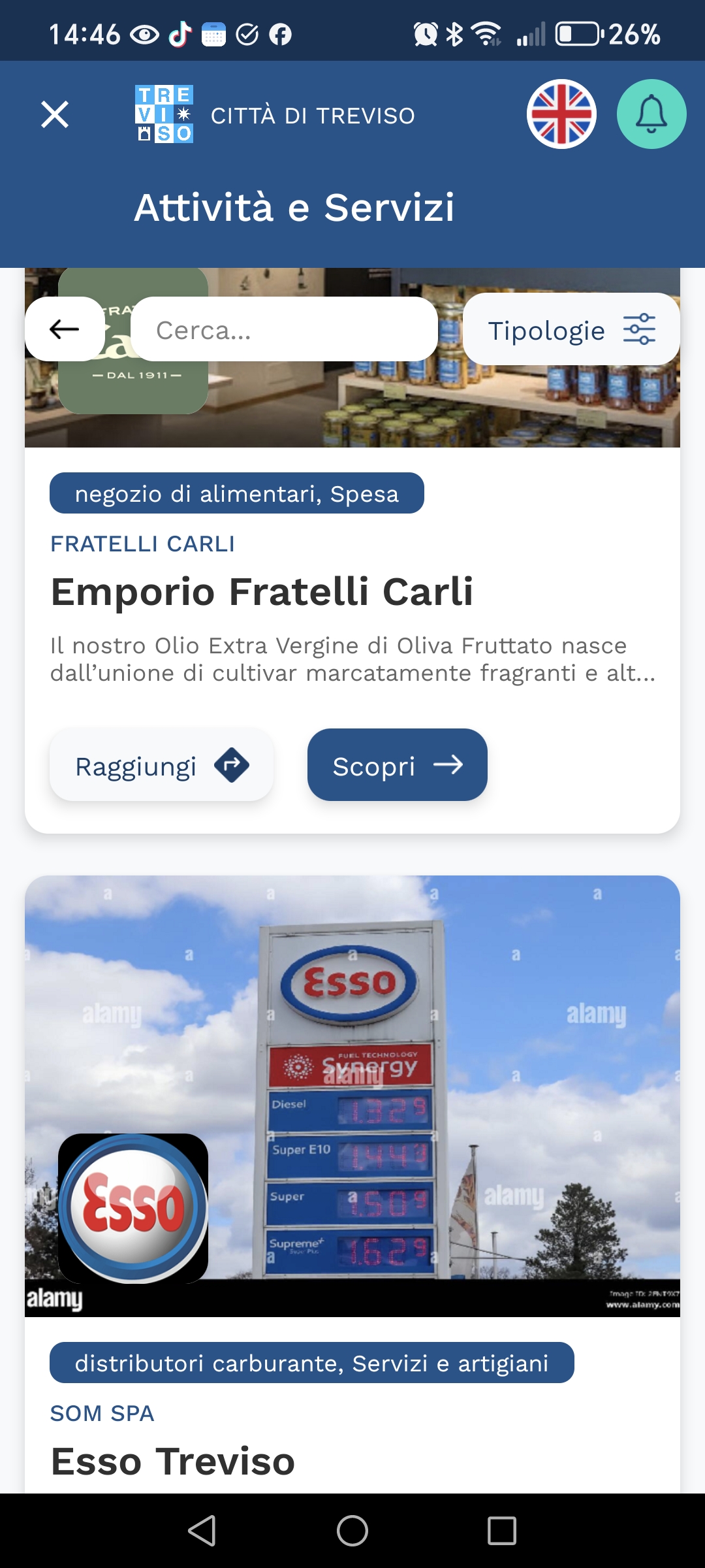 - Filtrare le attività per categoria e sottocategoria e ordinare i risultati per vicinanza o per ordine alfabetico